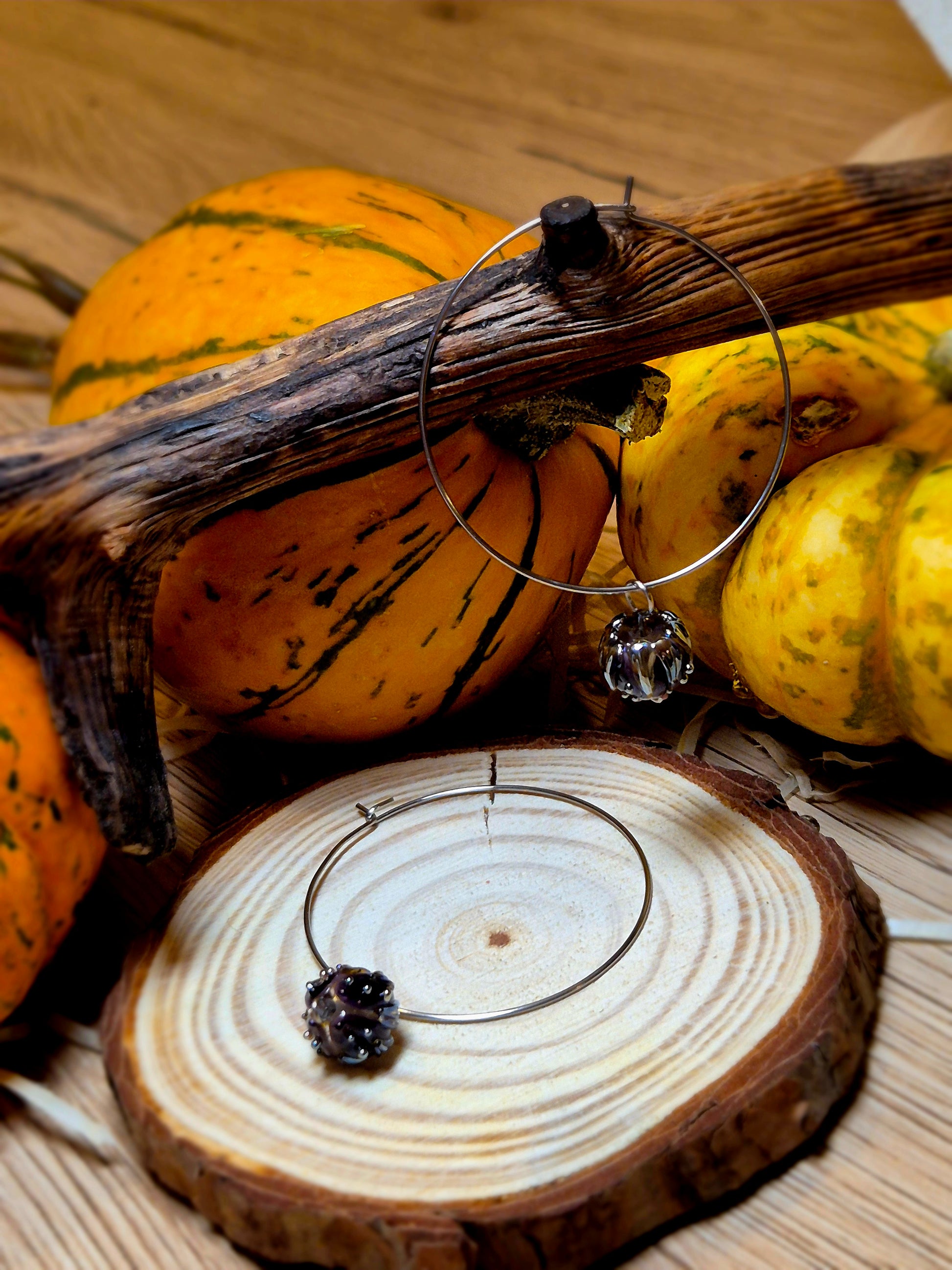 Pièces de la collection Halloween, ces boucles d’oreilles en acier inoxydable arborent de superbes roses en verre façonnées à la main dans un atelier d’artisanat en Ukraine. Chaque fleur est minutieusement modelée, offrant un rendu unique et plein de caractère.