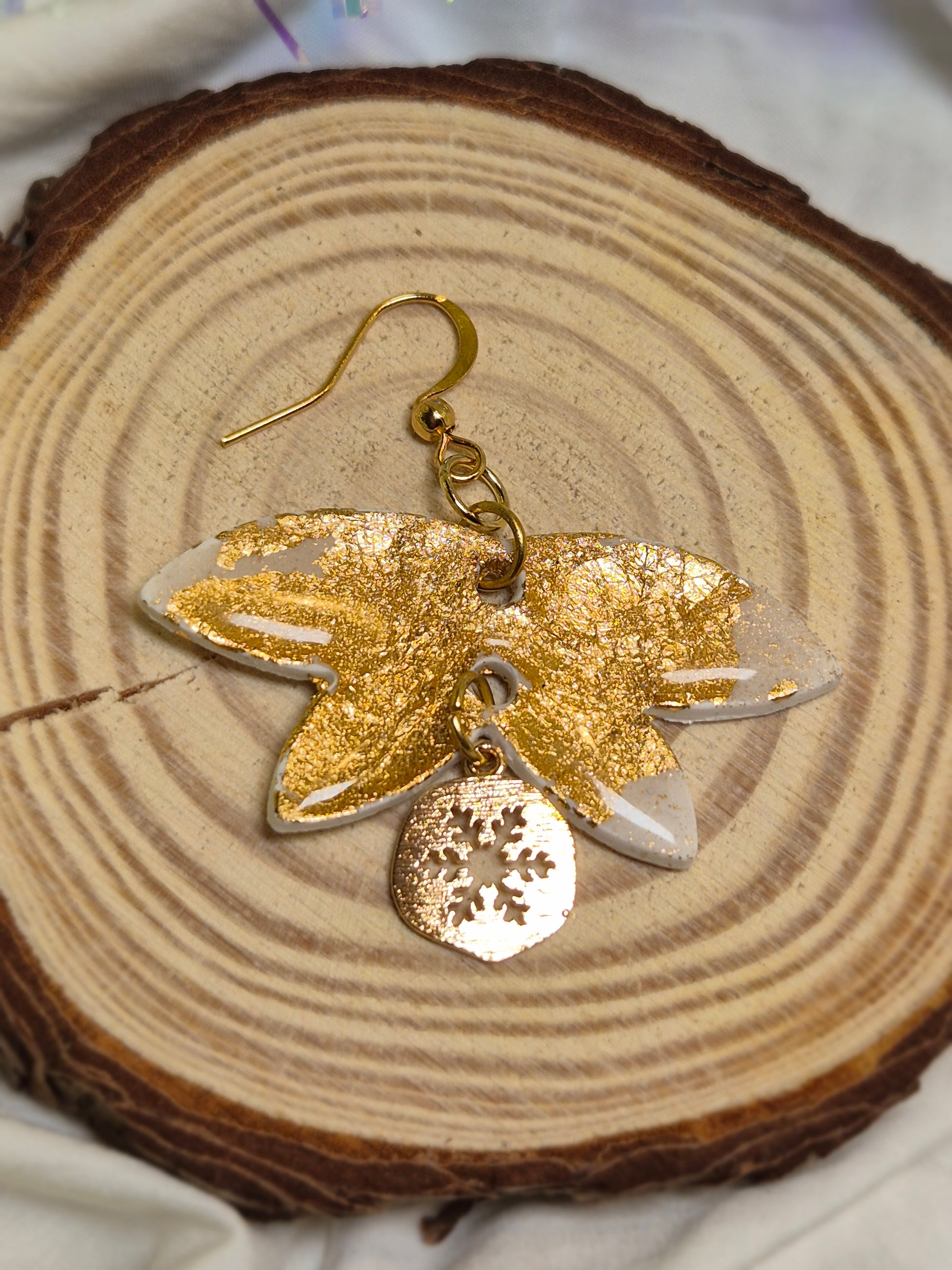 Boucles d’oreilles Blanche et Feuille d’Or - Breloque flocon de neige